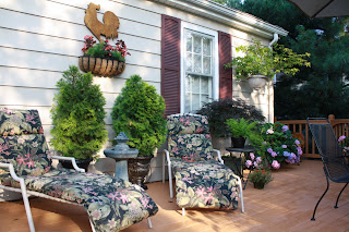 I am excited to start decorating the front porch and backyard deck. My husband is very talented at landscaping; I am very lucky to have him around. Here are a few pics of the deck at our previous house. I am sure this house will look similar because we had the new deck built with the same dimensions and he saves the plants in planters by storing them in the garage/basement until Spring (this saves money).