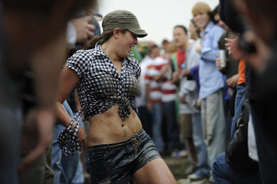 Most everyone is drunk in the infield. I recall a naked man dancing on top of a food vendor trailer with security guards trying to coax him to come down. I remember being afraid to go to the port-a-potty because I witnessed a guy going in one, his friends who were drunk, tipping the thing over and the guy staggering out covered in toilet bowl blue stuff. Thankfully, I did not think my friends would do that to me, but I could not help but think that somebody may think it was funny to do that to a random person.