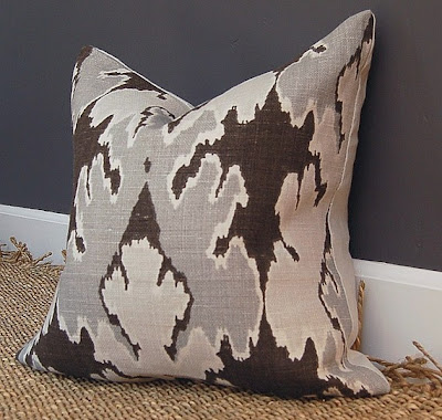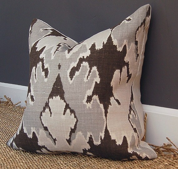 I found some beautiful pillows from this Etsy Seller. I am very happy with the quality of her work. I would definately purchase from her again. I bought two 20 inch pillows in Kelly Wearstler Bengal Bazaar, graphite and chocolate fabric.