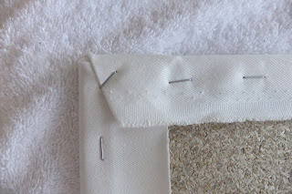 I just started in the middle on one side began stapling. Here is a good pic of how I folded the corners.