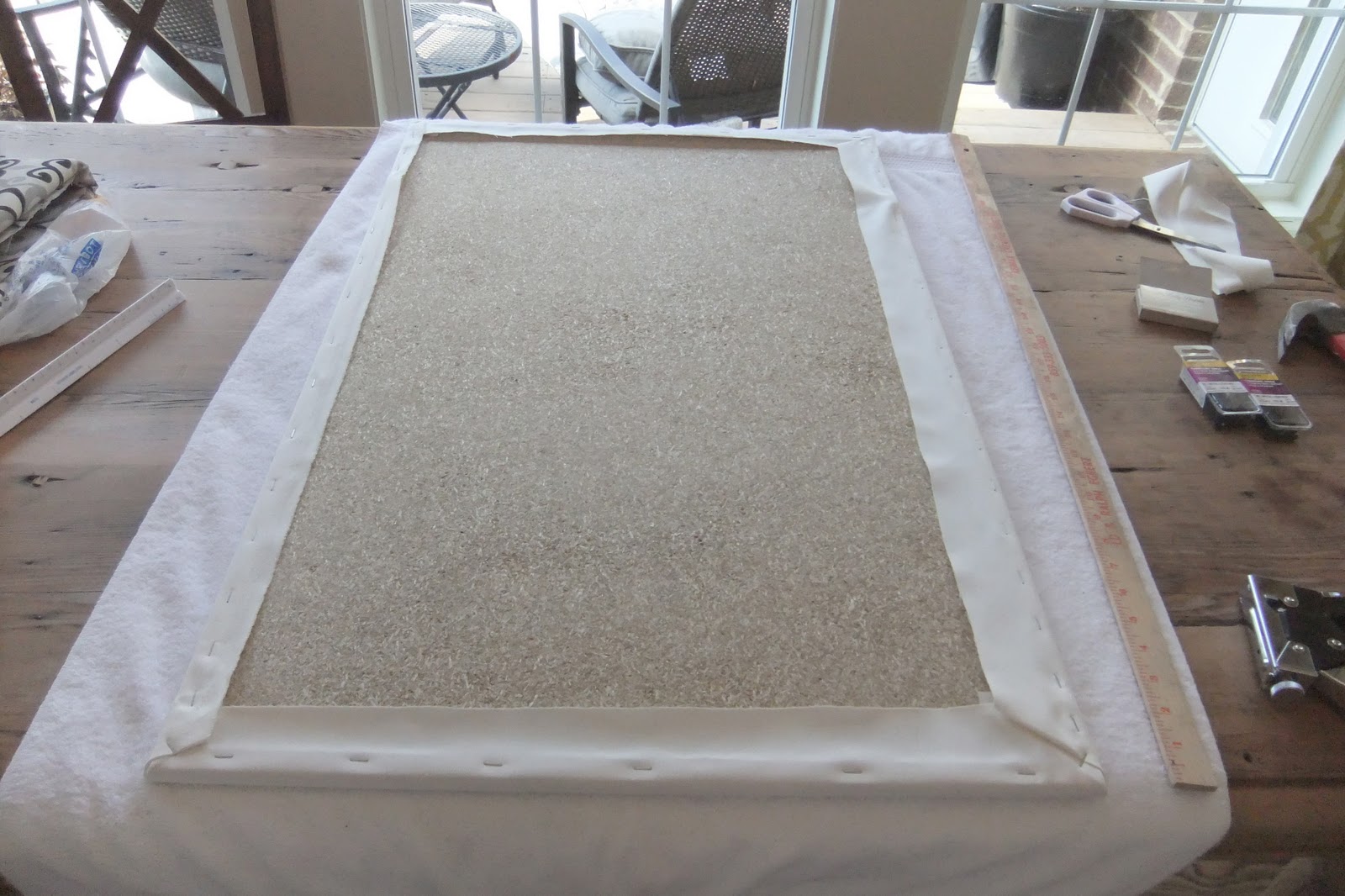 I trimmed the fabric to overlap a couple of inches. I also ironed the fabric after I trimming because I wanted a smooth surface to work with.
