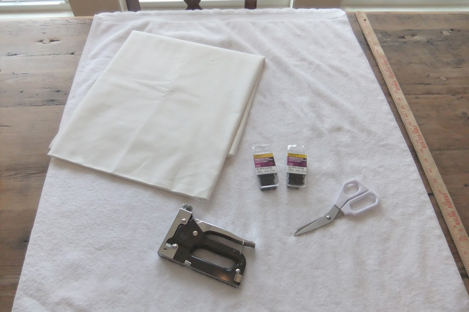 Fabric, upholstery stapler, nail trim, scissors, ruler.