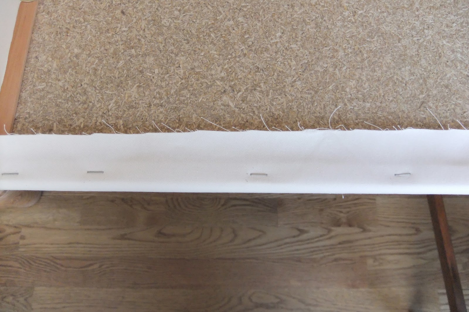 All the fabric is stapled. Time to flip it over to make sure it looks right.
