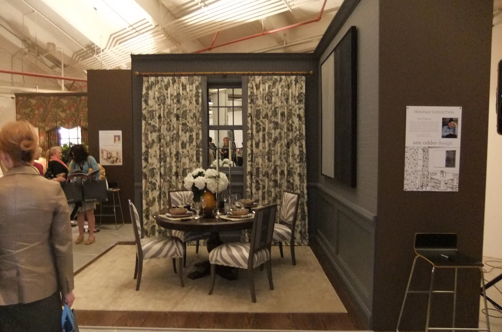 Mr. Cohler's design was my favorite. He took a Treyes Handblock pattern and updated it in a tasteful, modern look. Eric designed the fabric for the dining chairs and I think the pattern was a brilliant play on the traditional English country house chintz drapes.