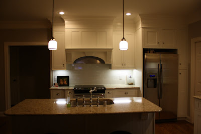 I think the kitchen is my favorite part of our house so far. I really spent a lot of time including sleepless nights trying to make everything perfect. I went to a kitchen design specialist, but I was not feeling the "wow" factor with the designs. I actually ended up going with the guy the builder usually uses, but I had everything drawn out and tons of pictures of the way I wanted it.