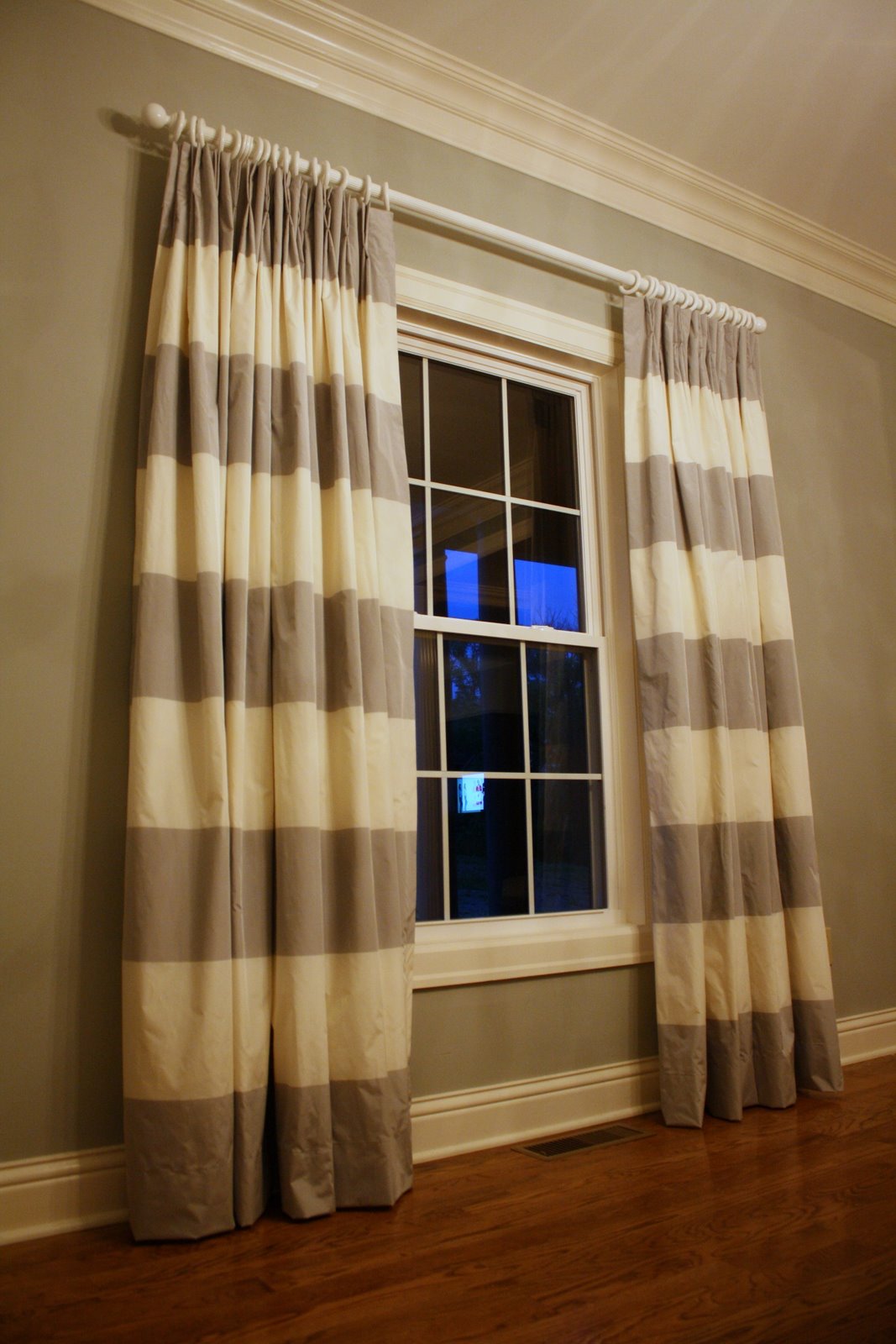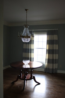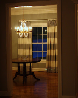 The drapes for the dining room were finished and hung this week. I really love them! Originally I wanted these in the breakfast area, but UG thought these would look better in the dining room and of course they were right. I am sorry that the picture quality is not very good. I just could not get a good picture, I tried the evening they were hung and the next morning.
