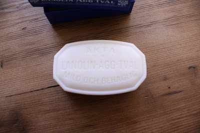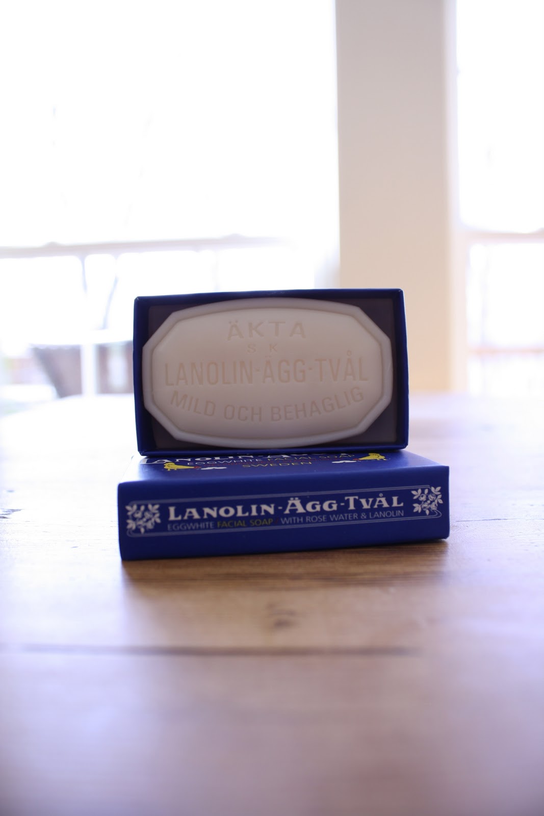 Have you ever tried an egg white facial? I have and I liked the way my skin glowed afterward but I did not care for the slimy feeling of the egg. I found this great Swedish soap called, Lanolin Agg Tval, that does the same thing, except you don't need to crack a single egg. You can read some Amazon reviews here. It is not a miracle but it is a nice spa-like treatment for your face that you can do at home.