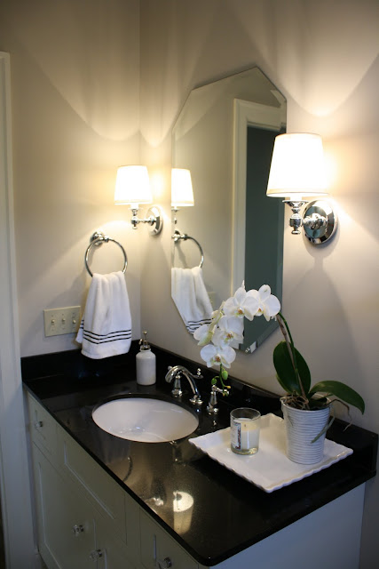 Here is a crappy "before" photo of the bathroom...actually, all before photos should be crappy, so this is perfect and do not read too much into the "crappy" phrase because I am talking about a bathroom. I just mean the photographer (I may have to fire her) did not get a sharp photo.