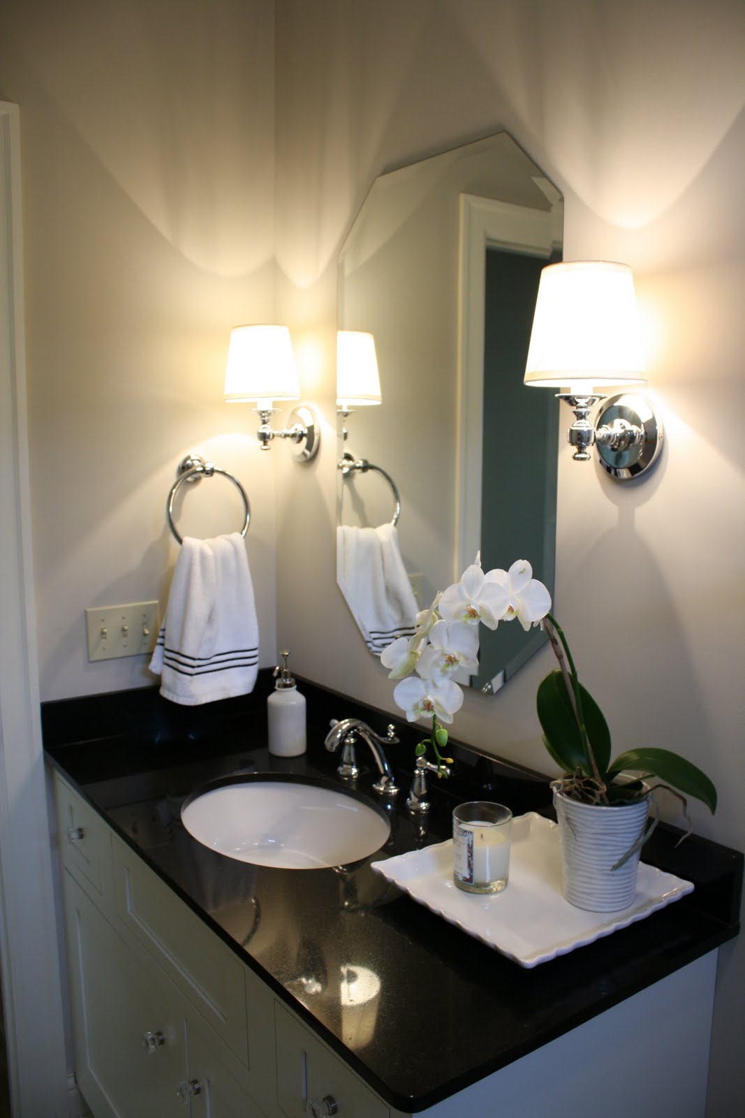 I added a pretty orchid from the grocery, a platter that I turned into a tray from TJMaxx and my all time favorite Seda Candle in Japanese Quince.